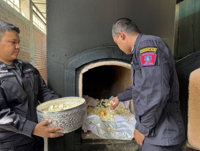 ภายหลังเสร็จพิธีที่ บก.สปพ. เจ้าหน้าที่ได้เคลื่อนร่างสุนัขตำรวจตรีซาโบ้ไปประกอบพิธีฌาปนกิจที่วัดผาสุกมณีจักร จังหวัดนนทบุรี โดยมีพระสงฆ์ทำพิธีบังสุกุล และผู้ร่วมงานยืนสงบนิ่งไว้อาลัย ก่อนปิดฝาโลงและจุดเพลิงท่ามกลางบรรยากาศโศกเศร้า
