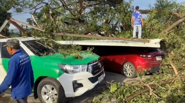 เมื่อเวลา 14.40 น. วันที่ 17 ตุลาคม 2568 ผู้สื่อข่าวรายงานว่าเกิดพายุฝนลมกระโชกแรงในหลายพื้นที่ของจังหวัดพระนครศรีอยุธยา ส่งผลให้เกิดความเสียหายหลายจุด โดยเฉพาะบริเวณโรงจอดรถตรงข้าม สภ.วังน้อย ต.ลำตาเสา อ.วังน้อย จ.พระนครศรีอยุธยา เกิดเหตุต้นจามจุรีขนาดใหญ่ อายุประมาณกว่า 50 ปี ถูกพายุพัดหักโค่นล้มทับโรงจอดรถ ส่งผลให้รถยนต์ได้รับความเสียหายจำนวน 12 คัน ส่วนใหญ่เป็นรถยนต์ของข้าราชการตำรวจและมีรถยนต์ของกลางในคดียาบ้า 2 ล้านเม็ด รวมอยู่ด้วย 1 คัน