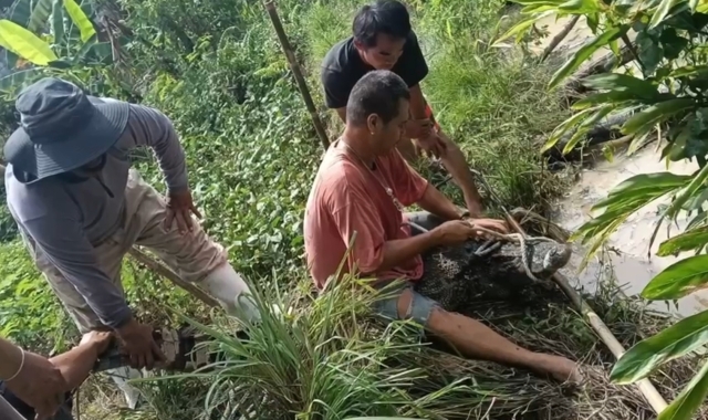 สอบถามชาวบ้านได้เล่าให้ฟังว่าจระเข้ตัวนี้หลุดออกมาจากรถขนส่งที่เตรียมจะนำจระเข้เข้าไปยังโรงฆ่าสัตว์ เพื่อแปรรูปเป็นผลิตภัณฑ์ต่างๆ ซึ่งจระเข้ตัวนี้ได้คลานหนีลงมาบริเวณคลองใกล้เคียงบ้านของตน ซึ่งพอตนทราบจึงได้รีบโทรแจ้งเจ้าหน้าที่ให้รีบเข้ามาทำการจับจระเข้ตัวนี้โดยเร็ว เพราะเกรงว่าจะเป็นอันตรายต่อชาวบ้าน