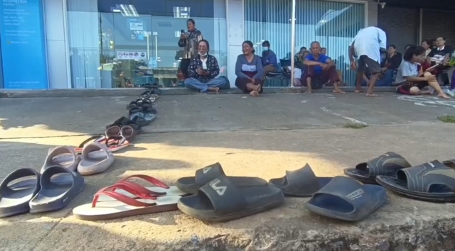 โดยเฉพาะที่หน้าธนาคารกรุงไทยสาขาหนองบัวระเหว ได้มีชาวบ้านจากหมู่บ้านตำบลต่างๆทั้งมาจากอ.จัตุรัส และหนองบัวระเหว อ.ซังใหญ่ และใกล้เคียงจำนวนมากที่หน้าธนาคารกรุงไทย ตั้งแต่เช้ามืดที่ผ่านมา ซึ่งก็มีปรากฏการใหม่ในการจองคิว โดยชาวบ้านได้นำรองเท้าที่ใส่มาถอดวางเรียงเป็นทางยาว ตั้งแต่หน้าประตูธนาคารไปด้านข้างธนาคารยาวนับ 150 เมตร คิวยาวกว่า 200 คิว เพื่อรอเข้าคิวจองสิทธิ์ให้เจ้าหน้าที่ธนาคารฯช่วยลงแอปเป๋าตั้ง และช่วยสแกนใบหน้าให้ด้วย หลังเปิดทำงานธนาคารฯ โดยมีกลุ่มคนวัยกลางคนไปถึงผู้สูงอายุ หนุ่มสาวมานั่งรอเจ้าหน้าที่ธนาคารเรียกหมายเลขของตนที่กดคิวเพื่อแสดงตัวตน หวังที่จะได้เข้าร่วมโครงการคนละครึ่งพลัส