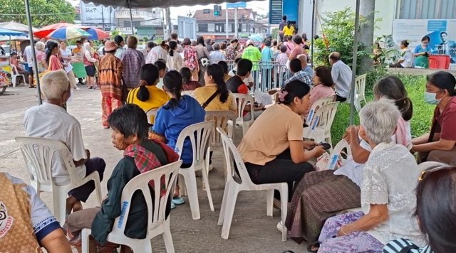 วันที่ 20 ตุลาคม 2568 ผู้สื่อข่าวรายงานบรรยากาศที่ธนาคารกรุงไทย สาขาศาลากลางจังหวัดศรีสะเกษ พบว่ามีประชาชนจำนวนมากหลั่งไหลมารอคิวลงทะเบียนรับสิทธิในโครงการ “คนละครึ่งพลัส” ตั้งแต่ช่วงเช้า บางรายถึงกับมานั่งรอหน้าธนาคารตั้งแต่ก่อนเปิดทำการ จนทำให้พื้นที่ภายในธนาคารแน่นขนัด ที่นั่งบริการภายในธนาคารไม่เพียงพอ เจ้าหน้าที่ต้องนำเก้าอี้และเต็นท์มาตั้งเพิ่มเติมบริเวณด้านหน้าอาคาร เพื่อรองรับประชาชนที่มารอคิวบางส่วนต้องยืนรอเป็นเวลานาน ท่ามกลางสภาพอากาศร้อนอบอ้าว