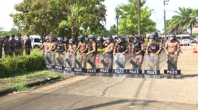 โดยบรรยากาศในช่วงเช้า มีเจ้าหน้าที่ตำรวจ สภ.จันทบุรี หลายสิบนาย อำนวยความสะดวกเรียบร้อย คุมเข้มตั้งแต่ด้านหน้าทางเข้าโรงแรม เนื่องจากมีกลุ่มผู้ชุมนุม เครือข่ายนักศึกษาประชาชนปฏิรูปประเทศ (คปท.) เดินทางมาเรียกร้องให้ยกเลิกการประชุมตั้งแต่ช่วงเช้ามืด โดยผู้ที่ไม่ได้มีส่วนเกี่ยวข้อง หรือไม่มีบัตรเจ้าหน้าที่หรือบัตรสื่อมวลชนไม่สามารถเข้าออกได้ ทำให้กลุ่ม คปท. ต้องปักหลักด้านหลังโรงแรมเท่านั้น