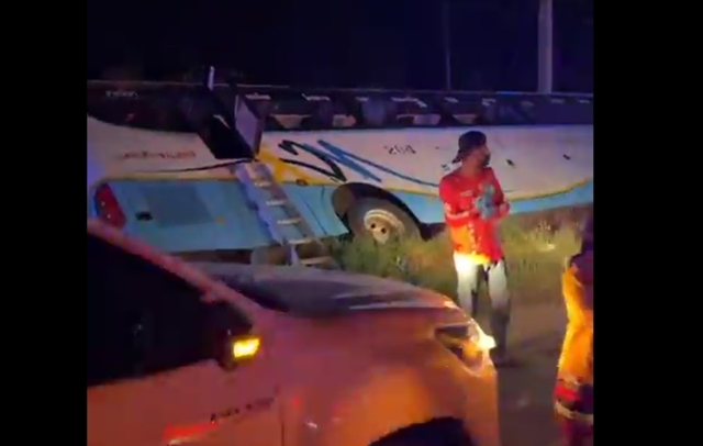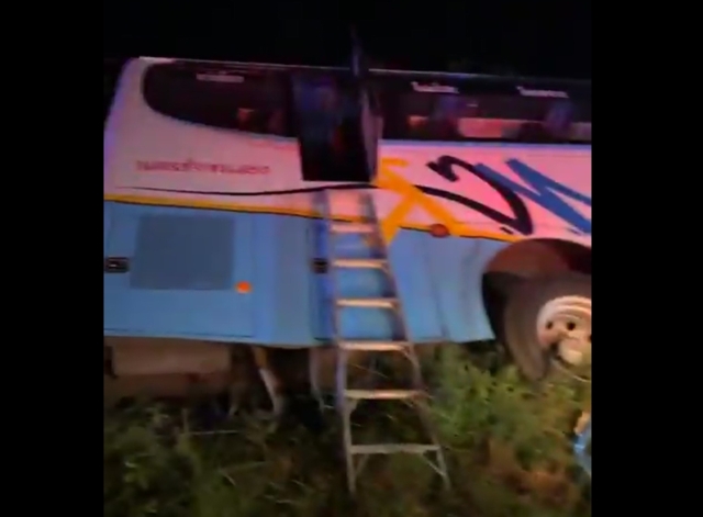 วันที่ 21 ต.ค. 68 ที่จ.นครราชสีมา ผู้สื่อข่าวรายงานว่า เมื่อเวลาประมาณ 20.30 น. ของเมื่อวานนี้ เจ้าหน้าที่กู้ภัยฮุก31 นครราชสีมา จุดบริการอำเภอโนนไทยได้รับแจ้งอุบัติเหตุรถทัวร์เสียหลักลงข้างทางมีผู้บาดเจ็บหลายราย ทางเจ้าหน้าที่กู้ภัยฯจึงได้นำกำลังเจ้าหน้าที่เข้าพื้นที่เกิดเหตุ