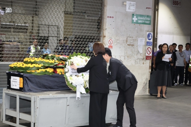 จากนั้น รมว.แรงงาน พร้อมคณะ ได้วางพวงหรีดไว้อาลัยแด่ผู้วายชนม์ และยืนสงบนิ่งเป็นเวลา 1 นาที ซึ่งบรรยากาศการรับร่างแรงงานไทยในวันนี้เป็นไปด้วยความเศร้าโศก ก่อนที่จะมีการนำร่างของนายสนธยา ขึ้นรถเพื่อเดินทางกลับสู่อ้อมอกของครอบครัวในจังหวัดหนองบัวลำภู ต่อไป