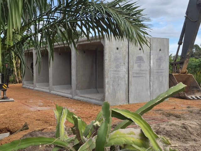สำหรับรูปแบบของการก่อสร้างนั้นจะเป็นการวางครอบบล็อกเหลี่ยม 2.1 x 2.1 เมตร จำนวน 2 ท่อน และจะมีกำแพงการดินรอบรอบ ในส่วนของการปฏิบัติในห้วงเวลาที่ผ่านมาได้ร่วมมือกับผู้นำชุมชนสำรวจพื้นที่ในการปฏิบัติ ในปัจจุบันผลการปฏิบัติการคิดเป็น 12.5% กำลังวางท่อเหลี่ยม
