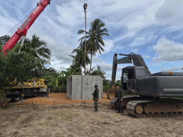 (24 ต.ค. 2568) ที่จังหวัดศรีสะเกษ พ.ท.สุรศักดิ์ มณีศรี ผบ.ช.พัน.3 พล.ร.3 เปิดเผยถึงการสร้างหลุมหลบภัยเพิ่มเติมในพื้นที่ ว่า สำหรับงานก่อสร้างหลบภัยความจุ 40 คน ได้รับการสนับสนุนงบประมาณจากกองทุนหทิพย์ทัย โดยในพื้นที่กองกำลังสุรนารี จะมีการก่อสร้างทั้งหมด 7 แห่ง แบ่งเป็นในพื้นที่จังหวัดอุบลราชธานี 2 แห่ง จังหวัดสุรินทร์ 2 แห่ง จังหวัดศรีสะเกษ 2 แห่ง และจังหวัดบุรีรัมย์ 1 แห่ง ซึ่งในส่วนของพื้นที่กองพันทหารช่างที่ 3 กองพลทหารราบที่ 3 รับผิดชอบนั้นอยู่ในพื้นที่ศรีสะเกษ 2 แห่ง อยู่ในอำเภอกันทรลักษณ์