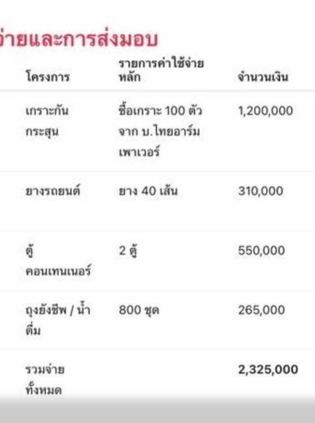 (25 ต.ค. 2568) มูลนิธิ กันจอมพลัง ช่วยสู้ ได้โพสต์ข้อความ หลังจากมีคนสอบถามมาว่า อันนี้ใช่รายการจัดซื้อของ "มูลนิธิ กันจอมพลัง ช่วยสู้" หรือไม่ "เราขอตอบว่าไม่ใช่เอกสารของเราอย่างแน่นอน โดยดูเพียงแค่ชื่อบริษัทชุดเกราะที่เราดำเนินการด้วยก็คนละบริษัทกันแล้วและเราไม่เคยซื้อยางในราคานี้ ตู้คอนเทนเนอร์เราจัดซื้อ 60 ใบ ได้ส่วนลดพิเศษ จึงแจ้งเพื่อความกระจ่างมา ณ ที่นี้"