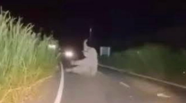จะเห็นว่าช้างป่านอนหมอบนิ่งไปกับพื้น แล้วบิดตัวยกตัวชูงวงด้วยอาการบาดเจ็บอยู่พักใหญ่ ก่อนจะเดินหลบเข้าป่าข้างทาง ท่ามกลางความมืด กู้ภัยพนมได้แจ้งนายเอกชัย แสนดี หัวหน้าเขตรักษาพันธุ์สัตว์ป่าเขาอ่างฤาไน จึงได้ส่งทีมหน่วยเคลื่อนที่เร็วชุดผลักดันช้างป่าเข้าตรวจสอบ พร้อมประสานรถพยาบาลทีมงานกู้ภัยพนม และรถกู้ชีพ อบต.ท่ากระดาน มารับช่วง นำคนเจ็บในรถ 3 รายไปส่ง รพ.สนามชัยเขต