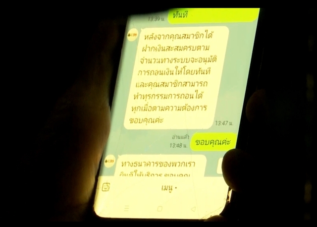 ขณะที่บางช่วงอดีตพยาบาล ได้นำข้อความที่มีการพูดคุยกับแก๊งสแกมเมอร์ ให้กับทีมข่าวอ่านข้อความการสนทนา โดยเนื้อหาข้อความ “สวัสดีค่ะ ตอนนี้ยอดเงินในบัญชีของคุณเหลือเงินสะสม 4 ล้านบาท ยังค้างชำระ 100,000 ถ้าคุณสมาชิกชำระหมดจะได้รับโบนัส 599,999 บาท