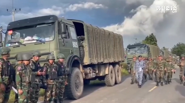 ล่าสุดพบเพจเฟซบุ๊กที่ใช้ชื่อว่า "ชุมชนคนสุรินทร์" ได้โพสต์ภาพและคลิปภาพการเคลื่อนกำลังพลและถอนอาวุธหนัก ซึ่งพบว่าเป็นหน่วยทหาร BHQ ของกัมพูชาพร้อม ระบุข้อความว่า "โชว์โชว์โชว์ทหารคะแมร์กัมปูเจียโชว์แสดงศักยภาพการรื้อถอนอาวุธหนักออกจากพรมแดนไทย-กัมปูเจีย" วานนี้กองทัพคะแมร์ได้เตรียมถอนอาวุธหนักออกจากพื้นที่ชายแดนไทย-กัมปูเจีย ออกจากฐานที่มั่นในเขตจังหวัดเปรียะวิเฮียร (จ.พระวิหาร) และจังหวัดอุดรเมียนเจีย (จ.อุดรมีชัย) กลับฐานที่ปฏิบัติการเดิมคืน โดยมีคณะผู้สังเกตุการณ์อาเซียน (AOT) ที่คอยสังเกตุการณ์อย่างใกล้ชิดอีกด้วย