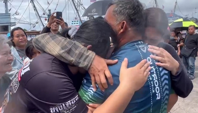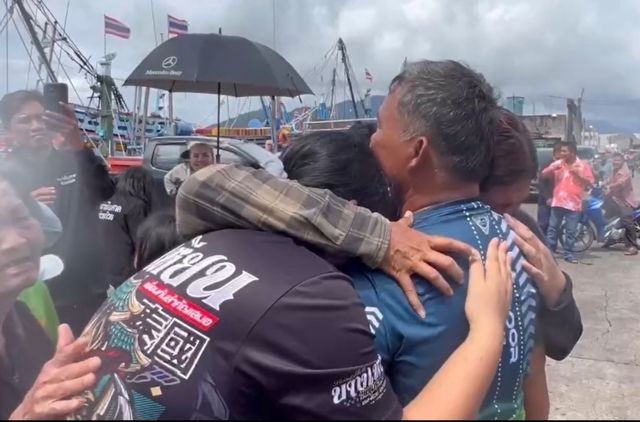 ครอบครัวต่างยืนมองไปที่เรือที่ค่อยๆ ลอยลำเข้าฝั่ง ทันทีที่เจอนายหลันบนเรือ ครอบครัวต่างร้องไห้ออกมาด้วยความดีใจ หลังเรือเทียบท่า นายหลันเดินลงมาบนบก เข้าสู่อ้อมกอดครอบครัวทันที ทุกคนต่างร้องไห้ออกมาด้วยความดีใจ หลังนายหลันพบหน้าครอบครัว ทางเจ้าหน้าที่กู้ภัยได้รับตัวไปตรวจร่างกายยังโรงพยาบาล