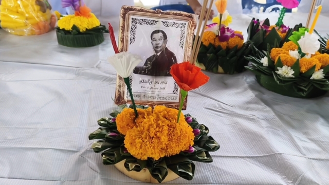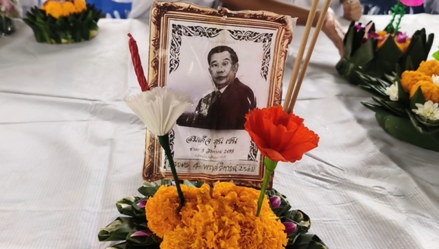 ส่วนที่สร้างความแปลกและฮือฮาก็คือเด็กชายวัย 12 ปี นักเรียนชั้นประถมศึกษาปีที่ 6 นำได้รูป “ฮุน เซน” มาติดไว้ที่กระทง โดยมีรูปขาวดำของสมเด็จฮุนเซน พร้อมกับมีตรงสื่อบรรยายใต้รูปว่า “ชาตะ 5 สิงหาคม 2495 วันคล้ายวันเกิดครบ 73 ปี มรณะ 4 พฤศจิกายน 2568 โดยมีธูปเทียนดอกไม้ปักอยู่บริเวณใจกลางกระทง