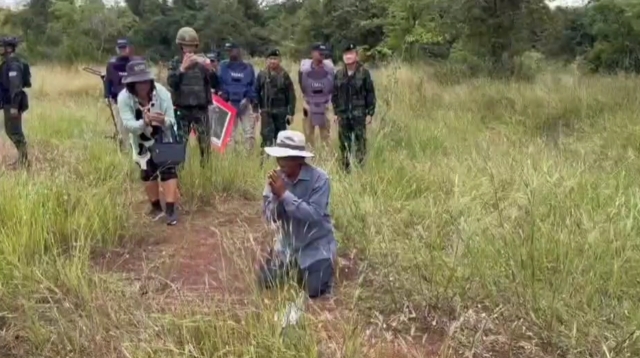 ถึงจุดที่เคยตั้งกระท่อม ซึ่งถูกทหารกัมพูชาเผาทิ้งในอดีต นายลุยถึงกับก้มลงกราบพื้นดินของตัวเอง พร้อมกล่าวทั้งน้ำตาว่า