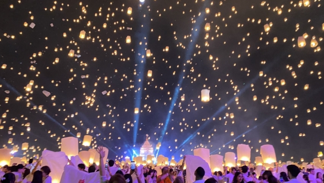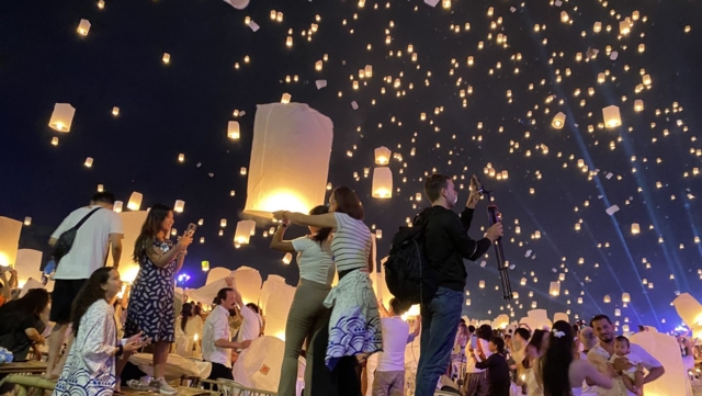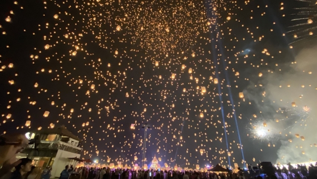 ช่วงเวลาสำคัญที่สุดของค่ำคืน เมื่อถึงเวลาที่กำหนดนักท่องเที่ยวได้ร่วมกันปล่อยโคมไฟยี่เป็งหลายหมื่นดวงขึ้นสู่ท้องฟ้ายามค่ำคืนพร้อมกัน สร้างปรากฏการณ์แห่งแสงไฟที่สว่างไสว และงดงามตระการตา โคมลอยนับไม่ถ้วนได้ค่อยๆ ลอยขึ้นไปรวมกลุ่มกันบนฟ้ามองดูคล้ายดวงดาวที่เคลื่อนไหวอย่างช้าๆ เหนือน่านฟ้าเชียงใหม่