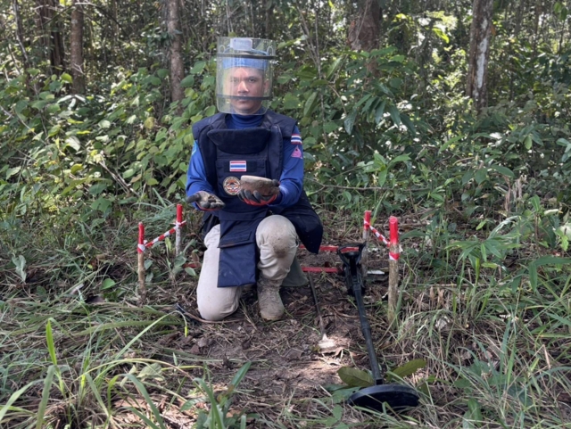 จากกรณีที่ศูนย์ปฏิบัติการทุ่นระเบิดแห่งชาติ หรือ TMAC เข้าปฏิบัติการเก็บกู้ทุ่นระเบิดในพื้นที่ตามแนวชายแดนในพื้นที่ช่องอานม้า อำเภอน้ำยืน จังหวัดอุบลราชธานี พบว่า เมื่อวานนี้ 5 พ.ย.68 ศูนย์ปฏิบัติการทุ่นระเบิดแห่งชาติ หรือ TMAC สามารถเก็บกู้ทุ่นระเบิด จำนวน 5 ทุ่น ซึ่งเป็นทุ่นระเบิดเก่าสมัยเวียดนาม ที่ตกค้าง เรียกทุ่นระเบิดสังหารบุคคลแบบแรงระเบิดอยู่กับที่ ชนิด PMN ผลิตจากสหภาพโซเวียตเดิม โดยจุดที่ตรวจพบอยู่ประชิดชายแดน บริเวณฐานพลาญแต้ ใกล้ช่องอานม้า