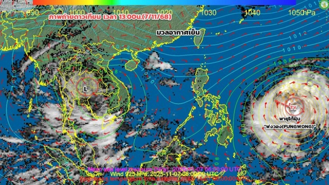ในขณะที่ พายุไต้ฝุ่น "ฟงวอง" (FUNGWONG) เป็นพายุลูกที่ 26 (จากการนับจำนวนพายุของ RSMC TOKYO JAPAN) ในมหาสมุทรแปซิฟิก (ทางตะวันออกของฟิลิปปินส์) กำลังเคลื่อนตัวทางตะวันตกเฉียงเหนือ คาดว่าจะเคลื่อนผ่านเกาะลูซอลประเทศฟิลิปปินส์ แล้วเคลื่อนตัวไปทางตะวันออกของประเทศจีนหรือขึ้นไปทางทิศเหนือทางเกาะไต้หวัน พายุนี้ไม่เคลื่อนตัวเข้าสู่ประเทศไทย ไม่น่ากังวง ไม่ควรตื่นตระหนก อัปเดตสถานการณ์จากกรมอุตุนิยมวิทยาเป็นระยะๆ