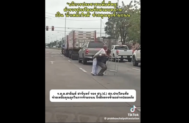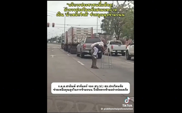 วันที่ 8 พ.ย. 68 โลกโซเชียลต่างแชร์คลิปตำรวจท่านหนึ่ง ช่วยเหลือคนชราด้วยการให้ขี่หลัง (ขี่กุ่ง ภาษาอีสาน) พาข้ามถนน ในช่วงการจราจรคับคั่ง ชาวเน็ตต่างออกมาชื่นชมการทำงานของเจ้าหน้าที่ตำรวจ และอยากให้เป็นตัวอย่างตำรวจ บางรายเอาไปเปรียบเทียบกับตำรวจอีกกลุ่มหนึ่งในลักษณะทำตัวไม่ค่อยดีว่าให้ดูตัวอย่างตำรวจคนนี้
