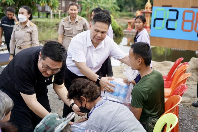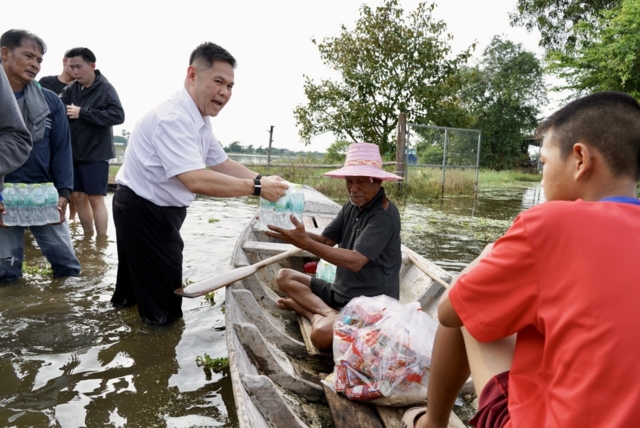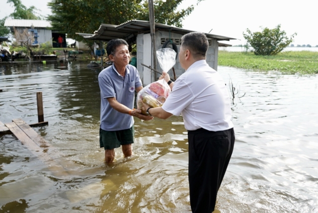 เพื่อเยี่ยมให้กำลังใจ พูดคุยทำความเข้าใจอธิบายถึงสถานการณ์น้ำที่ลงมาจากภาคเหนือ มาถึงพื้นที่รับน้ำ ก่อนจะ ผ่านแม่น้ำเจ้าพระยาลงทะเลอ่าวไทย รวมถึงสถานการณ์อุทกภัยในหลายจังหวัดขณะนี้ รวมทั้งได้มอบ ยาสามัญประจำบ้าน ถุงยังชีพ ให้กับผู้ประสบภัยหลายครัวเรือนด้วย