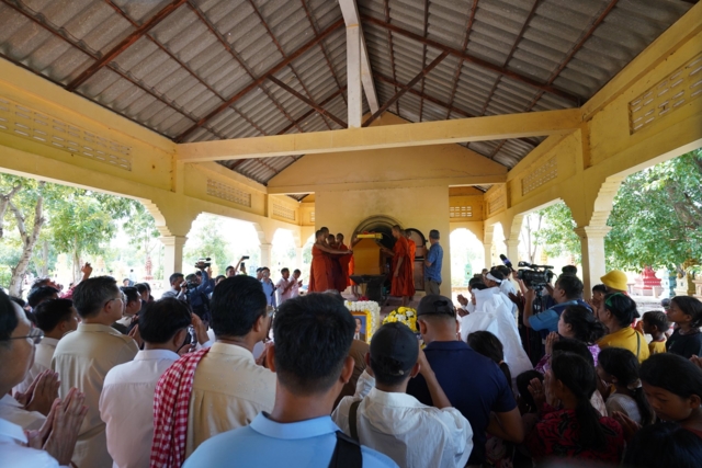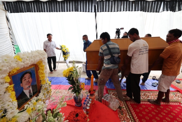 ศพผู้เสียชีวิตชื่อนาย ดี ไน ชาวกัมพูชา หรือที่รู้จักกันในชื่อ โกะซอล (กุศล) ซึ่งถูกทหารไทยยิงเสียชีวิตในหมู่บ้านปรีย์จัน เมื่อวันที่ 12 พฤศจิกายน 2568 ศพถูกส่งไปตั้งบำเพ็ญกุศลที่วัดจันสี อำเภอโอรจะเรา จ.บ็อนเตียย์เมียนเจ็ย