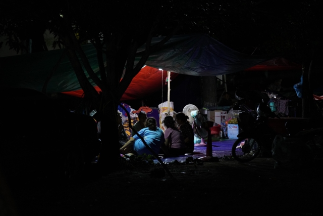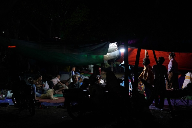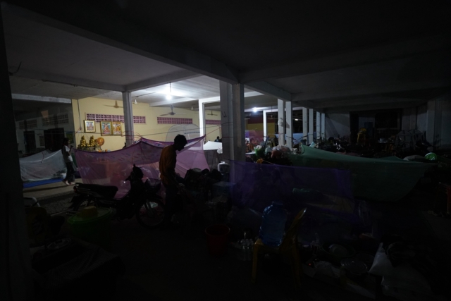 ภาพรวมของประชาชนในค่ายผู้ลี้ภัยที่วัดจันทน์สีสามัคคีรัตนาราม ในหมู่บ้านโคกเกิด (Korkert), ตำบลโคก (Kork), อำเภอโอร์เจริว (Ou Chrov), จังหวัดบันเตียเมียนเจย (Banteay Meanchey) ในคืนวันที่ 14 พฤศจิกายน 2568