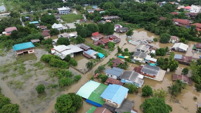 ขณะที่สถานการณ์น้ำท่วมพื้นที่ท้ายเขื่อนเจ้าพระยาใน อ.สรรพยา จ.ชัยนาท ล่าสุดพบว่ายังคงมีพื้นที่น้ำท่วมหนัก และระดับน้ำยังสูงไม่มีวี่แววว่าจะคลี่คลายพื้นที่ริมตลิ่ง 2 ฝั่งแม่น้ำถูกน้ำทะลักเข้าท่วมแล้วถึง 5 ตำบล คือ 3 ตำบลฝั่งซ้ายประกอบด้วย ต.ตลุก ต.หาดอาษา ต.โพนางดำออก และ 2 ตำบลฝั่งขวาประกอบด้วย ต.บางหลวง และต.โพนางดำตก ที่ระดับน้ำมีความลึกตั้งแต่ 30 ซม. - 3 ม.ในที่ลุ่มต่ำ ทำให้ชาวบ้านหลายชุมชนที่ต้องทนถูกน้ำท่วมมายาวนานกว่า 2 เดือนทำให้ชาวบ้านต้องใช้เรือเป็นพาหนะในการเดินทางเข้าออกหมู่บ้าน เพื่อเข้ไปดูแลทรัพย์สินในบ้าน และบางส่วนมีผู้ป่วยและผู้สูงอายุที่ไม่สะดวกในการอพยพอาศัยอยู่บนชั้น 2 ของบ้าน อีกทั้งยังพบว่าชาวบ้านจำนวนมาก เริ่มป่วยทั้งน้ำกัดเท้าผื่นคันและโรคเครียดจากสถานการณ์น้ำ มาขอคำปรึกษาและรับยาจากเจ้าหน้าที่รพ.สต.ในพื้นที่เพิ่มขึ้น