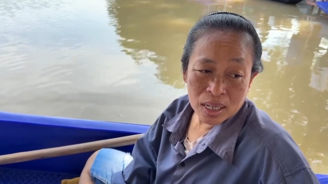 นางสาวศิริพร ภูธเรศ อายุ 55 ปี ชาวบ้านในพื้นที่เล่าว่าน้ำท่วมมานาน 3 เดือนแล้ว ความลำบากลำบากมาก การเดินทางต้องภายเรือเข้าออกเจอที่ดอนก็ต้องลุยน้ำลากเรือข้ามเพื่อพายเรือต่อออกมาข้างนอก ถ้าจะออกทางที่เป็นน้ำท่วมก็ต้องผ่านบ้านเรือนของชาวบ้านเขา ทำให้การเดินทางเข้าออกลำบาก ที่บ้านมีมอเตอร์ไซตอนนั้นน้ำลงก็ไม่ได้คิดอะไร ไม่คิดว่ารอบที่ 3 จะมา พอขึ้นมาทีนี้ไม่ได้เอารถออกมาลำบากจะไปไหนมาไหนก็ไม่ได้