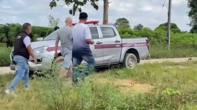 ในเบื้องต้นชายชาวต่างชาตินั่งสงบสติอยู่ที่บริเวณเก้าอี้หน้าบ้านสวมใส่กางเกงขาสั้น ไม่ใส่เสื้อ โดยมีภรรยาคอยพูดคุยปลอบโยนจากนั้นล่ามภาษาได้สื่อสารถามแล้วตอบพอจับใจความได้ว่า เหตุการณ์ที่เกิดขึ้นเกิดจากมีอาการมึนเมา และมีความเครียดเรื่องปัญหาส่วนตัว จึงทำไปไม่ยั้งคิด หลังจากได้พูดคุยกับเจ้าหน้าที่แล้วชายชาวต่างชาติเข้าใจในสิ่งที่ตนได้ทำลงไป และมีสติขึ้น เจ้าหน้าที่ตำรวจจึงได้นำตัวไปที่สถานีตำรวจภูธรคลองลาน จังหวัดกำแพงเพชรเพื่อเปรียบเทียบปรับตามกฎหมายต่อไป