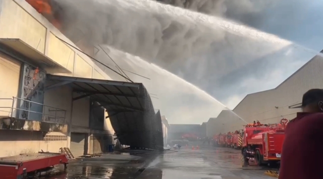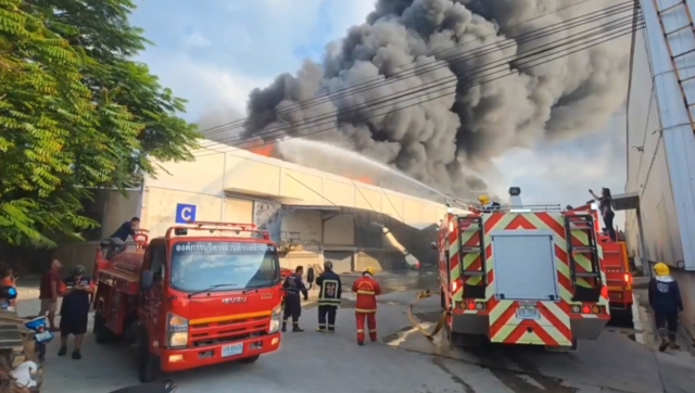 วันที่ 16 พ.ย.2568 เมื่อเวลา 15.30 น. พ.ต.ท.ภาณุพงศ์ ภาวะบุตร สารวัตรสอบสวนสภ.เมืองสมุทรสาคร รับแจ้งเหตุเพลิงโกดังเก็บสินค้าบริษัทแห่งหนึ่ง ในพื้นที่ ม.4 ต.บ้านเกาะ อ.เมือง จ.สมุทรสาคร จึงรายงานผู้บังคับบัญชาทราบแล้วรุดไปตรวจสอบพร้อมด้วยพ.ต.อ.พิเชษฐ์พงศ์ แจ้งค้ายคม ผกก.สภ.เมืองสมุทรสาครพ.ต.ท.โสภาส ถนนทิพย์ สวป.สภ.เมืองสมุทรสาคร นายคนึง ทองเที่ยง ปลัดอาวุโสอำเภอเมืองสมุทรสาคร นายชาตรี โพธิ์อบ นายกเทศมนตรีตำบลบางปลา พร้อมด้วยผู้แทนหน่วยงานที่เกี่ยวข้อง และเจ้าหน้าที่ดับเพลิงจากเทศบาลตำบลบางปลา,เทศบาลตำบลนาดีอบต.ท่าทราย พร้อมอบต.บ้านเกาะ และรถน้ำดับเพลิงในพื้นที่ใกล้เคียงอีกรวมประมาณกว่า 20 คัน