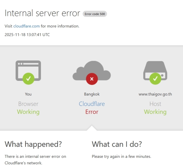 เกิดเหตุขัดข้องทางเทคนิคครั้งใหญ่บนเครือข่ายของ Cloudflare ผู้ให้บริการโครงสร้างพื้นฐานอินเทอร์เน็ตรายสำคัญ ส่งผลให้เว็บไซต์และบริการออนไลน์ชื่อดังหลายแห่งทั่วโลกหยุดชะงักและไม่สามารถเข้าใช้งานได้ชั่วคราว ปัญหาดังกล่าวทำให้ผู้ใช้งานที่พยายามเข้าเว็บไซต์อย่าง X (เดิมคือ Twitter) และเว็บไซต์รีวิวภาพยนตร์อย่าง Letterboxd ต่างพบกับข้อความแสดงข้อผิดพลาด ซึ่งระบุถึงปัญหาที่เกิดกับเครือข่ายของ Cloudflare โดยตรง