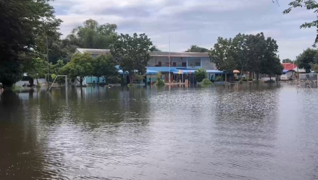 วันที่ 19 พ.ย.2568 ผู้สื่อข่าวรายงานว่า สถานการณ์น้ำในพื้นที่ลุ่มน้ำเจ้าพระยา แม้จะเริ่มมีปริมาณลดลง แต่ชาวบ้านในหลายพื้นที่ยังคงได้รับผลกระทบ ส่งผลทำให้บ้านวัดโรงเรียนรวมไปถึงหน่วยงานราชการหลายแห่ง ยังคงได้รับผลกระทบจากสถานการณ์อุทกภัยในครั้งนี้ แม้ว่าสถานการณ์น้ำลุ่มเจ้าพระยา จะมีแนวโน้มที่ดีขึ้น แต่น้ำเอ่อเข้าท่วมแล้วต้องรอให้น้ำลดมากกว่านี้ถึงจะสามารถระบายได้
