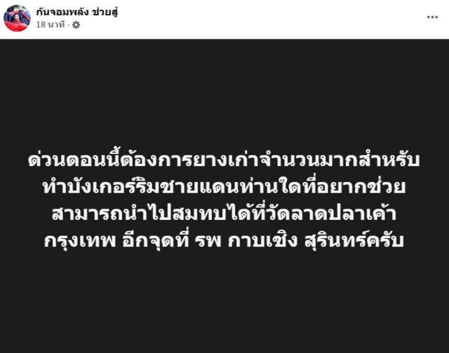 พร้อมกับโพสต์ใต้คอมเมนต์ว่า ขอบคุณทุกแรงพลังที่ส่งมาครับตอนนี้ต้องการเร่งด่วนเลยครับ