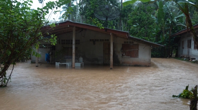 ขณะที่ฝนตกถล่มทั้งคืนที่ผ่านมา จนถึงช่วงเช้าวันนี้ ภายในเขตเทศบาลเมืองพัทลุง ถนนหลายสายภายในชุมชน ต่างมีน้ำท่วมขังโดยเฉพาะบริเวณชุมชน บ้านนางลาดเหนือ ชาวบ้านต้องเร่งนำกระสอบทรายกั้นน้ำทะลักเข้าบ้านกันอย่างโกลาหล เนื่องจากระดับเพิ่มสูงขึ้นอย่างรวดเร็ว ขณะเดียวกันเจ้าหน้าที่เร่งสูบน้ำระบายออกจากพื้นที่อย่างเร่งด่วน