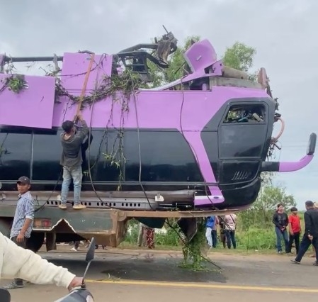 วันที่ 20 พ.ย. 68 สำนักข่าว The Phnom Penh Post โพสต์ข่าวและภาพอุบัติเหตุที่เกิดขึ้น ในจังหวัดกำปงธม พร้อมรายละเอียดระบุว่า อุบัติเหตุรถบัสชนกันคร่าชีวิตอย่างน้อย 13 ราย มีผู้เสียชีวิตอย่างน่าเศร้าอย่างน้อย 13 ราย หลังจากรถบัสสองชั้นตกลงไปในแม่น้ำในจังหวัดกำปงธม เมื่อเวลาประมาณ 04.00 น. ของเช้าวันนี้ อุบัติเหตุเกิดขึ้นที่เขตสันตุก ตำรวจท้องถิ่นระบุว่า รถบัสกำลังเดินทางไปยังกรุงพนมเปญในขณะที่เกิดโศกนาฏกรรม