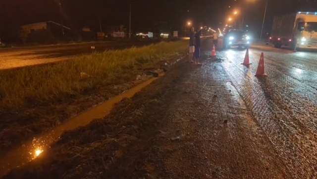 เมื่อไปตรวจสอบที่เกิดเหตุ ก็พบสภาพรถทัวร์โดยสารประจำทางสายสุไหงโก-ลก ไปภูเก็ต หมายเลขทะเบียน 10-1497 ตรัง เสียหลักพลิกตะแคง ตกร่องน้ำกลางถนน ขอบหลังคาบนด้านขวาได้รับความเสียหาย ขณะที่ริมถนนก็พบผู้โดยสารจำนวนมากพร้อมกระเป๋าสัมภาระยืนรออยู่