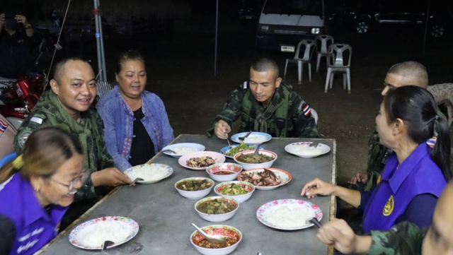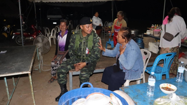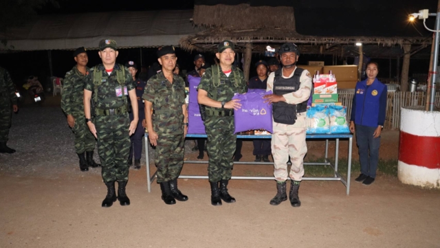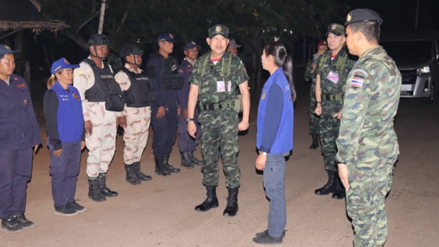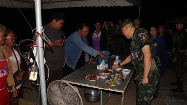 ชาวบ้านต่างยินดีที่แม่ทัพเดินทางลงพื้นที่ในยามค่ำคืนเคียงบ่าเคียงไหลกับกำลังพลและเจ้าหน้าที่ ที่ปฎิบัติหน้าที่อยู่แนวชายแดนไทย-กัมพูชา
