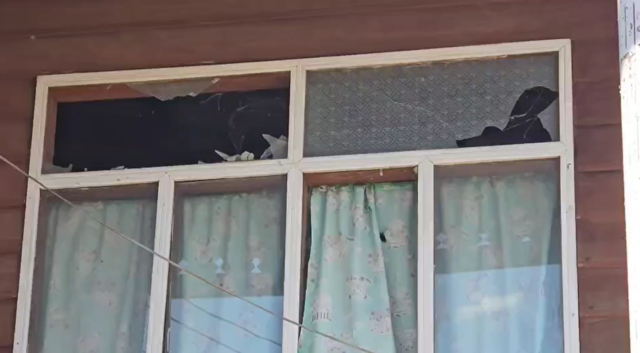 ขณะที่การสู้รบทวีความรุนแรงมากขึ้น และการยิงปะทะของทหารทั้งสองฝ่ายผ่านมานานหลายชั่วโมง ได้เกิดเหตุการณ์ระทึกขึ้น เนื่องจากได้มีลูกระเบิดวิถีโค้งไม่ทราบฝ่ายยิงหลุดข้ามแนวชายแดนจากจุดปะทะ เข้ามาตกลงที่กลางหมู่บ้านแม่โกนแกน หมู่ที่ 4 ต.มหาวัน อ.แม่สอด จ.ตาก ซึ่งคาดว่าเป็นระเบิดวิถีโค้งขนาด 60 มม. ไม่ทราบฝ่าย โดยแรงระเบิดที่ตกลงแปลงเกษตรภายในบ้าน นายคำ อายุ 75 ปี ทำให้หลังคาบ้านและกระจกแตกเสียหายหลายแห่ง