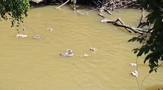 วันที่ 22 พ.ย. 68 นาย ปราโมทย์ สุวรรณฌชติ ผู้ใหญ่บ้านหมู่ 2 ต.วังหว้า อ.แกลง จ.ระยอง รับแจ้งจากชาวบ้านว่า พบซากลูกหมูจำนวนมากลอยอยู่ในคลองวังหว้า และลอยเข้าไปติดบริเวณฝายน้ำล้น หลังจากรับแจ้งนายปราโมทย์จึงแจ้งปศุสัตว์อำเภอแกลงไปตรวจสอบ