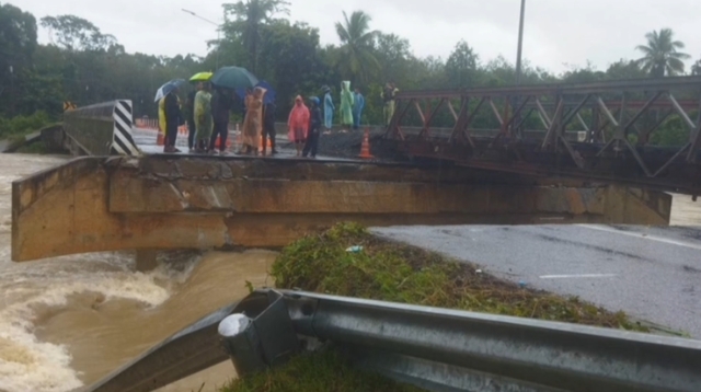 แขวงทางหลวงยะลา ชี้แจงว่า ช่องทางจราจรบริเวณดังกล่าวได้รับผลกระทบจากสถานการณ์น้ำท่วมหนักในปีที่ผ่านมา ทำให้เกิดการทรุดตัวจากแรงดันของกระแสน้ำ ทางหน่วยงานเคยติดตั้งสะพานเหล็กแบรี่ (Bailey bridge) สำรองไว้ให้รถผ่านได้เพียง 1 ช่องทางจราจร แต่กระแสน้ำในช่วงฝนตกหนักครั้งนี้ไหลเชี่ยวกราก ทำให้ดินบริเวณคอสะพานเกิดการทรุดตัวซ้ำ จนอาจเสี่ยงให้สะพานเหล็กแบรี่พังถล่มได้