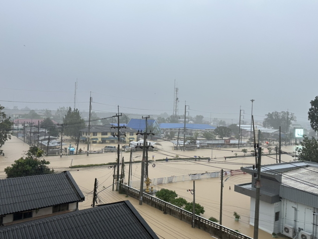 วันที่ 24 พ.ย. 68 เวลา 09.15 น. สถานการณ์น้ำท่วมในอำเภอนาทวี จังหวัดสงขลา ยังคงอยู่ในภาวะวิกฤต หลังเกิดฝนตกหนักต่อเนื่องตั้งแต่ช่วงเย็นวานนี้ (23 พ.ย.68) ส่งผลให้มวลน้ำทะลักเข้าท่วมพื้นที่ทั้ง 10 ตำบล ครอบคลุม 92 หมู่บ้าน ส่งผลกระทบประชาชนกว่า 15,000 ครัวเรือน รวมกว่า 50,000 คน ขณะเดียวกัน ถนนสายหลักและสายรองทุกเส้นทางถูกตัดขาด ไม่สามารถสัญจรได้ ทำให้การเข้าถึงพื้นที่ประสบภัยต้องอาศัยเรือเป็นหลัก