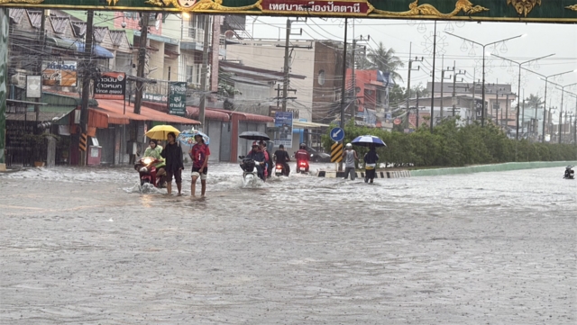 (24 พ.ย. 2568) ผู้สื่อข่าวรายงานว่า หลังเกิดฝนตกหนักต่อเนื่องตั้งแต่วันที่ 17 พ.ย. 2568 ในพื้นที่ จ.ปัตตานี ประกอบกับมวลน้ำจำนวนมากจากตอนเหนือของ จ.ยะลา รวมถึงน้ำฝนสะสมและน้ำป่าที่ไหลหลากลงมาสมทบในแม่น้ำปัตตานี ส่งผลให้ระดับน้ำเพิ่มขึ้นอย่างรวดเร็ว ก่อนเอ่อล้นตลิ่งอย่างฉับพลันท่วมพื้นที่ต่างๆ ของ จ.ปัตตานี เป็นวงกว้าง ประชาชนได้รับผลกระทบเกือบทุกพื้นที่