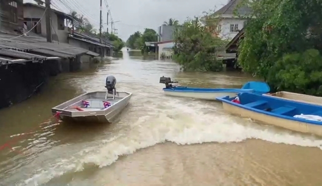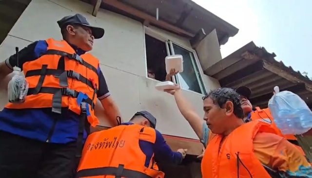 ด้าน พ.ต.จรินทร์ อินทคีรี นายทหารกิจการพลเรือน หน่วยพัฒนาการเคลื่อนที่ 41 สำนักงานภาค 4 หน่วยบัญชาการทหารพัฒนา ได้นำกำลังพลพร้อมเรือท้องแบนติดเครื่องยนต์ ออกให้การช่วยเหลือชาวบ้านลำภู ม.1 ต.ลำภู ที่มีชาวบ้านจำนวนเกือบ 20 ครัวเรือน อาศัยอยู่ที่บริเวณชั้น 2 ซึ่งมีกระแสน้ำเชี่ยวกรากแ ละมีระดับน้ำท่วมขังสูงโดยเฉลี่ย 80 ถึง 190 ซ.ม. ซึ่งทุกคนไม่ยอมอพยพ ทางเจ้าหน้าที่ทหารจึงได้หาน้ำดื่มและอาหารกล่อง ออกตระเวนแจกจ่ายเพื่อใช้ปะทังชีวิตแล้ว