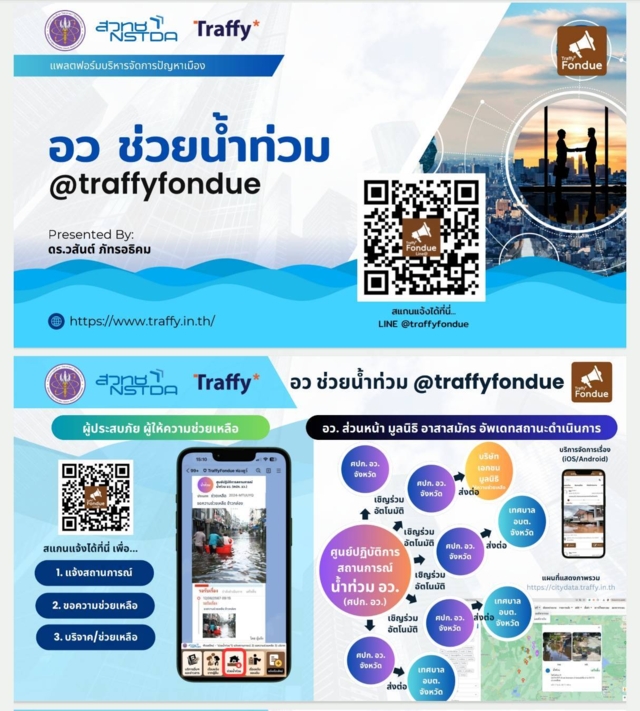โดยขณะนี้มีผู้แจ้งเหตุจำนวนมาก และการเดินทางของเจ้าหน้าที่มีอุปสรรคจากน้ำท่วมรุนแรง อาจทำให้ รอสายนาน หรือ รอการเข้าช่วยเหลือ อยู่บ้าง แต่เจ้าหน้าที่ทุกนายกำลังปฏิบัติงานอย่างเต็มความสามารถ