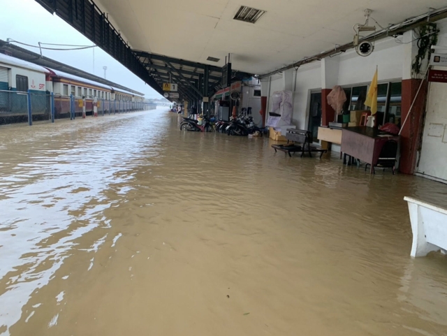 วันนี้ (25 พ.ย. 68) การรถไฟฯ รายงานสถานการณ์ความคืบหน้าน้ำท่วมทางรถไฟในพื้นที่ภาคใต้ตอนล่าง ที่ยังคงประสบปัญหาฝนตกหนักอย่างต่อเนื่อง ซึ่งระดับน้ำได้เพิ่มสูงขึ้นและขยายเป็นวงกว้างในหลายพื้นที่ของจังหวัดสงขลา สุราษฎร์ธานีกระบี่ นครศรีธรรมราช ตรัง พัทลุง สตูล สงขลาปัตตานี ยะลา และนราธิวาส ส่งผลให้สถานีและทางรถไฟมีน้ำท่วมสูง