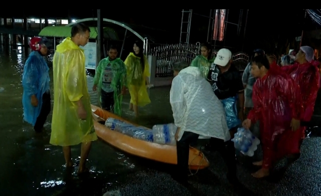 ขณะเดียวกันชาวบ้าน บางส่วนต้องการนำข้าวและน้ำดื่มเข้าไปให้ญาติ ที่ติดอยู่ด้านใน โดยพยายามจะเดินฝ่ากระแสน้ำที่ไหลเชี่ยวไปแต่ก็ไปไม่ไหว ในที่สุดทางผู้ประสบภัย 2 คนซึ่งเป็นชายหนุ่มจึงต้องตัดสินใจว่ายน้ำฝ่ากระแสน้ำเชี่ยวเข้ามาเอาอาหาร แต่เกือบจะถูกกระแสน้ำพัดไปเพราะน้ำเชี่ยวมากจนต้องไปเกาะอยู่ที่ต้นไม้เพื่อพักเอาแรงก่อนจะฝากกระแสน้ำเข้ามาอีกครั้งนึง