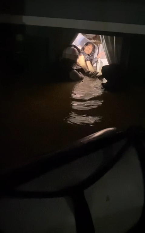 ซึ่งขณะเข้าช่วยเหลือ พบว่า ระดับน้ำภายในบ้านสูงถึง 1.80 เมตร การเข้าช่วยเหลือ ค่อนข้างยากลำบาก