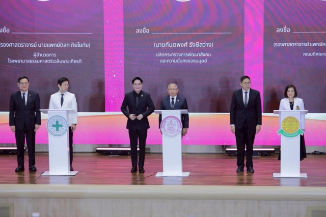 วันที่ 26 พฤศจิกายน 2568 นายอัครา พรหมเผ่า รัฐมนตรีว่าการกระทรวงการพัฒนาสังคมและความมั่นคงของมนุษย์ (พม.) เป็นประธานพิธีลงนามบันทึกข้อตกลงความร่วมมือ (MOU) เพื่อพัฒนาคุณภาพชีวิตกลุ่มเปราะบาง ระหว่างกระทรวง พม. โรงพยาบาลธรรมศาสตร์เฉลิมพระเกียรติ และคณะแพทยศาสตร์มหาวิทยาลัยธรรมศาสตร์ โดยมี ศ.ดร.ศุภสวัสดิ์ ชัชวาลย์ อธิการบดีมหาวิทยาลัยธรรมศาสตร์ ศ.ดร.สุรพล นิติไกรพจน์ นายกสภามหาวิทยาลัยธรรมศาสตร์ รศ.นพ.ดิลก ภิยโยทัย ผอ.รพ.ธรรมศาสตร์เฉลิมพระเกียรติ และ รศ.พญ.อัจฉรา ตั้งสถาพรพงษ์ คณบดีคณะแพทยศาสตร์ ร่วมลงนาม ณ ศูนย์ประชุมคณะแพทยศาสตร์ มธ. ศูนย์รังสิต
