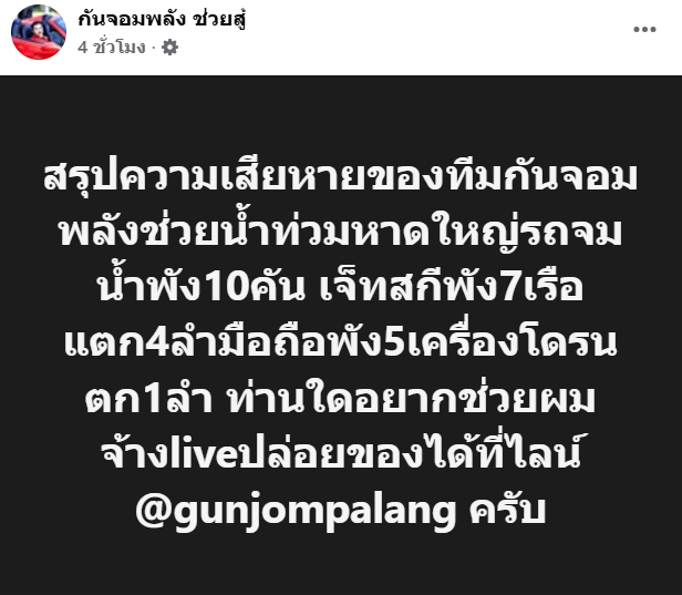 นอกจากนี้ "ท่านใดอยากช่วยผมจ้าง live ปล่อยของได้ที่ไลน์ @gunjompalang ครับ"