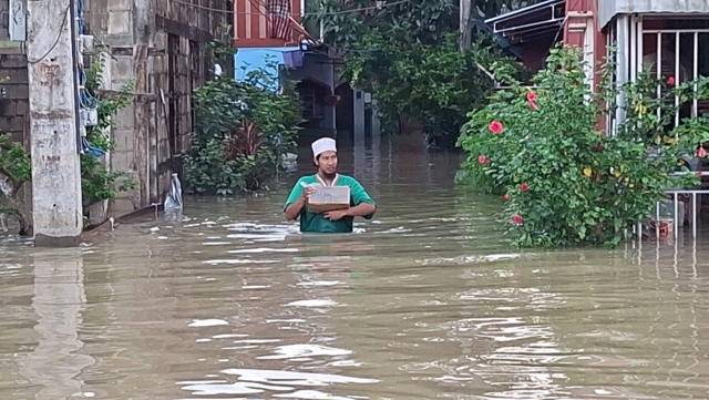 ผู้สื่อข่าวรายงานว่า วันที่ 30 พ.ย.2568 สถานการณ์น้ำท่วมในจังหวัดปัตตานี ยังคงไม่คลี่คลาย หลายพื้นที่ยังคงมีน้ำท่วมขังในระดับสูง เนื่องจากยังมีมวลน้ำจำนวนมากจากตอนบนของจังหวัดยะลา ที่ยังคงไหลลงมาสมทบอย่างต่อเนื่อง ประกอบกับช่วงนี้มีน้ำทะเลหนุน ส่งผลให้ระดับน้ำลดลงช้ามาก ทำให้น้ำท่วมครั้งนี้กินระยะเวลายาวนาน และสร้างความเดือดร้อนให้กับประชาชนเป็นวงกว้าง