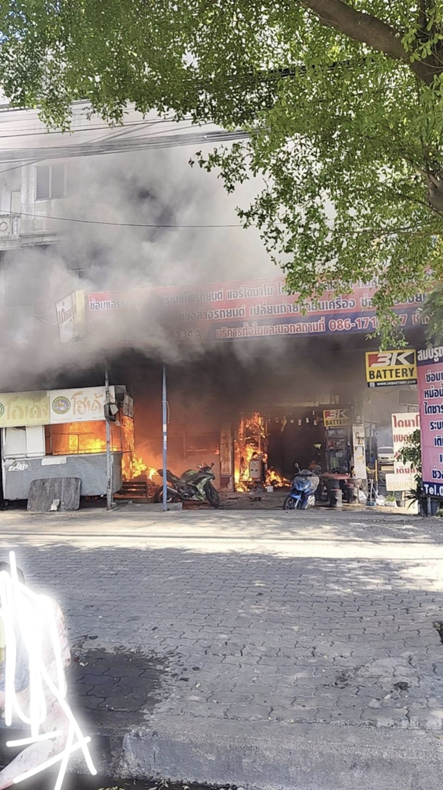 ตำรวจ สภ.กระทุ่มแบน ให้ข้อมูลว่า ที่เกิดเหตุเป็นอาคารพาณิชย์ 4 ชั้น ร้านขายแบตเตอรี่ซ่อมเครื่องยนต์