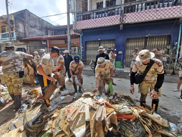 ในส่วนของกรมการปกครอง ได้ดำเนินการอำนวยการด้านการติดต่อสื่อสารผ่านระบบวิทยุสื่อสาร ควบคู่ระบบข่ายบังคับบัญชาของสำนักงานปลัดกระทรวงมหาดไทย โดยกองการสื่อสาร กรมการปกครอง ได้บูรณาการระบบวิทยุสื่อสารร่วมกับกรมป้องกันและบรรเทาสาธารณภัย สำนักงานปลัดกระทรวงมหาดไทย และภาคีเครือข่ายในพื้นที่ รวมไปถึงสำนักอำนวยการกองอาสารักษาดินแดน ได้นำนโยบายของกรมการปกครอง ให้กำลังพล อส.ทั้ง 2,000 นาย จากทั่วประเทศ เร่งขนย้ายเศษซากสิ่งของและทำความสะอาดบ้านเรือน อาคาร ถนนสาธารณะ สาธารณสถาน ช่วยเหลือประชาชน ตามแนวทาง "คืนบ้านน่าอยู่ให้พี่น้องชาวหาดใหญ่" พร้อมให้บริการงานทะเบียนและบัตรประจำตัวประชาชน เพื่ออำนวยความสะดวกผู้ประสบอุทกภัย ได้แก่ 1. เปิดบริการ จัดทำบัตรประจำตัวประชาชน ณ ศูนย์พักพิง 3 จุด คือ ม.สงขลานครินทร์ ศูนย์พักพิงโรงเรียนเทศบาล 4 และ ม.ราชภัฎสงขลา 2. บริการงานทะเบียนและบัตรประจำตัวประชาชน ศูนย์บริการอำเภอ..ยิ้ม เซนทรัลหาดใหญ่ และ 3. จัดตั้งจุดให้บริการรับแจ้งการตาย ณ ศูนย์พิสูจน์อัตลักษณ์บุคคล ม.สงขลานครินทร์ "โดยยกเว้นค่าธรรมเนียมเกี่ยวกับการทะเบียนและบัตรประจำตัวประชาชนในเขตพื้นที่ที่มีการประกาศเขตพื้นที่ประสบสาธารณภัยทั้งหมด